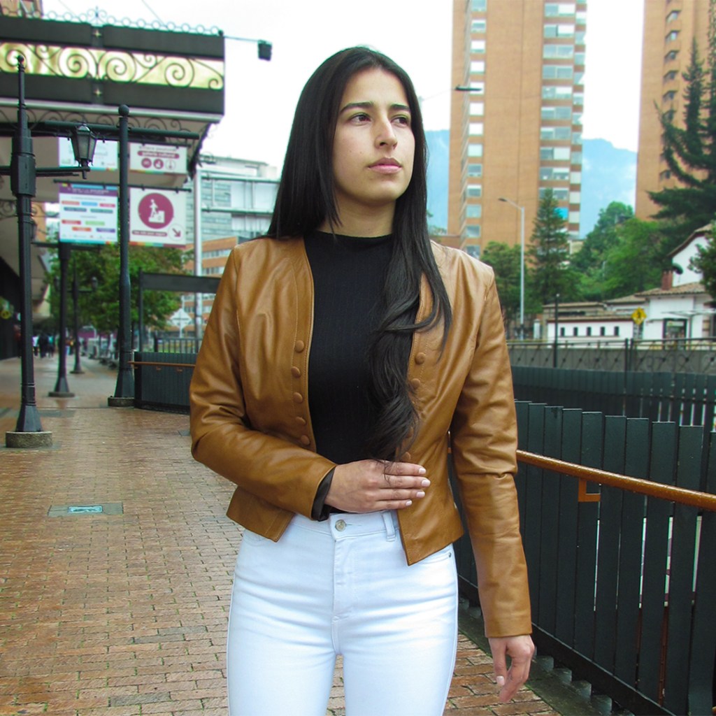 Elaborada en cuero tipo napa de ovino nacional, una chaqueta que evoca estilo y autenticidad.