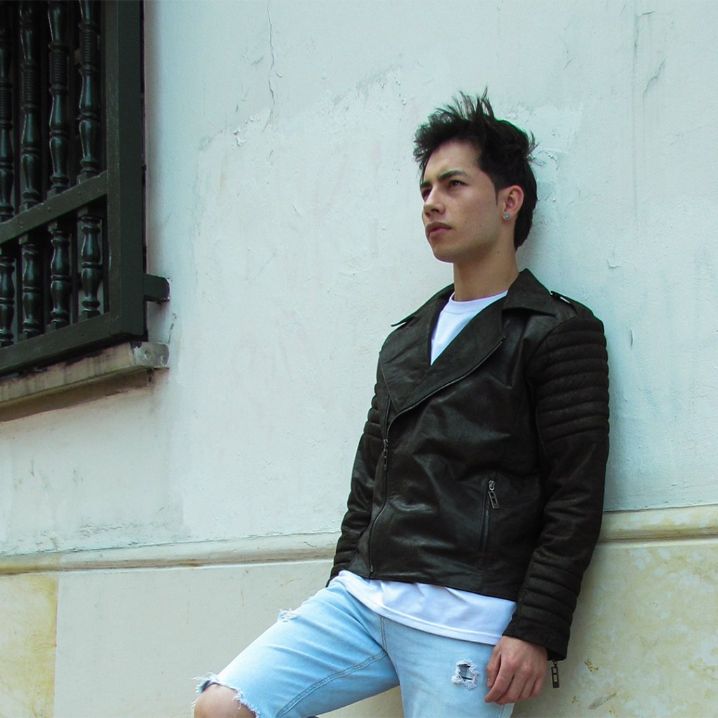 Diseñada con una silueta biker, cuello de solapa y bolsillos laterales en cremallera. Broches en hombro y cremallera diagonal en frente.