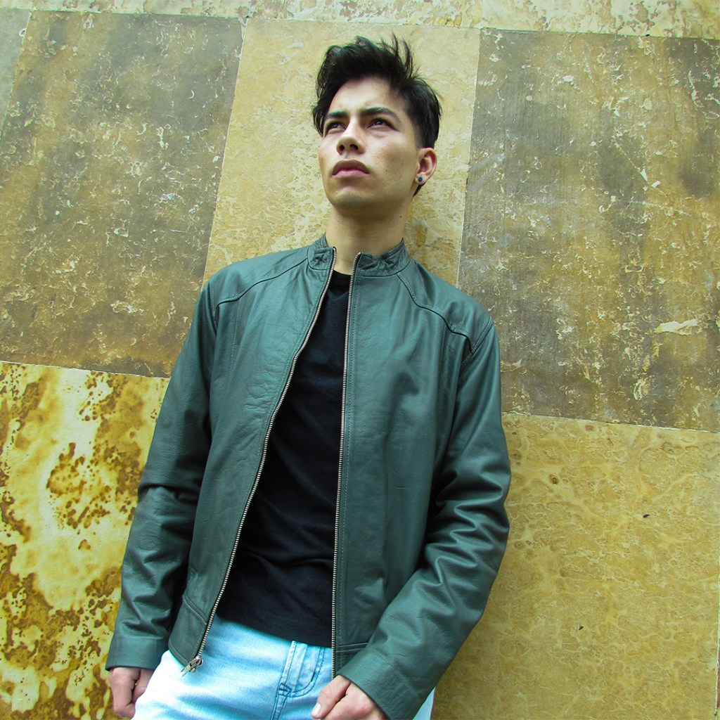 CHAQUETA DE CUERO TIPO NAPA COLOR VERDE.