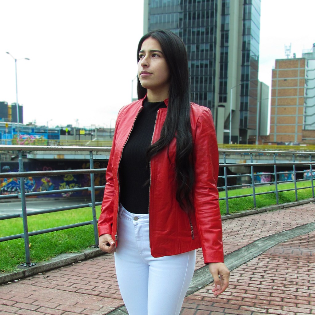Chaqueta de cuero tipo napa color rojo.$480.000