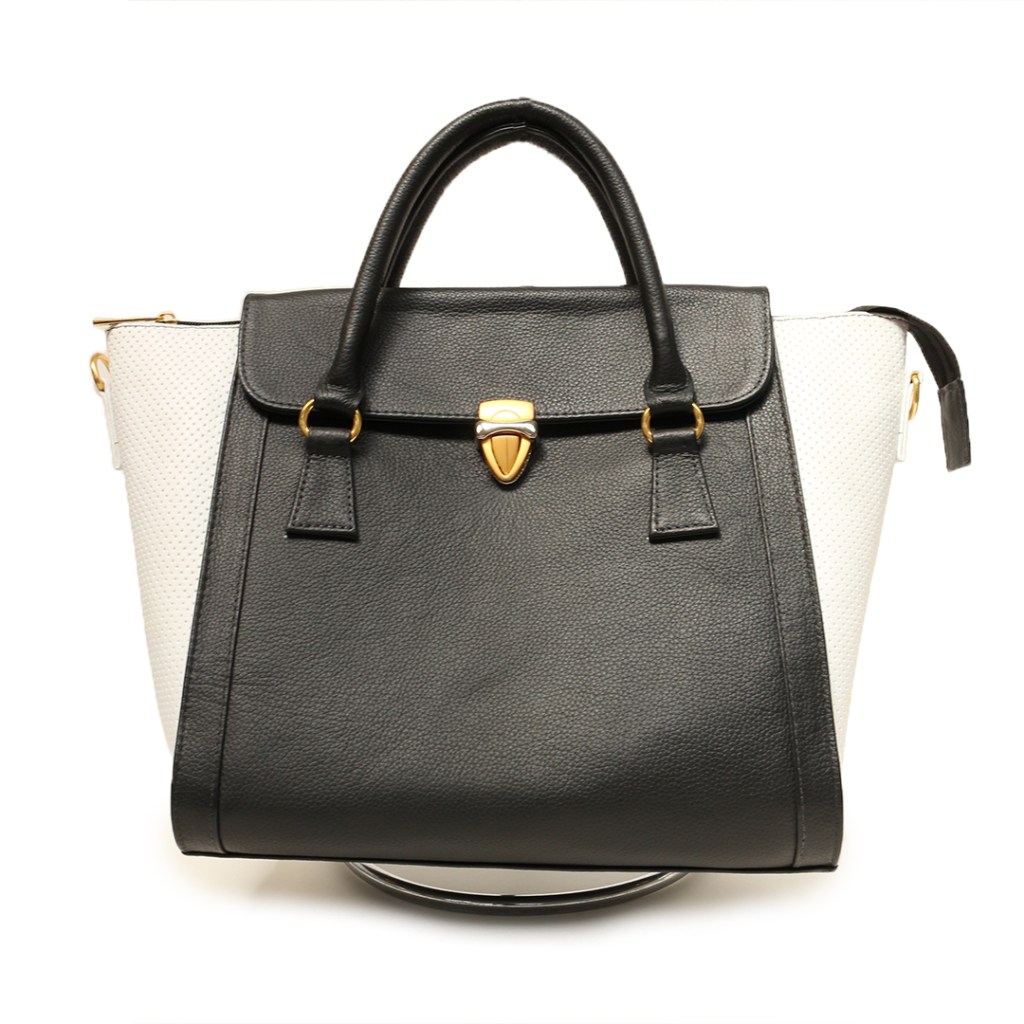 Bolso de cuero color negro y blanco.$320.000