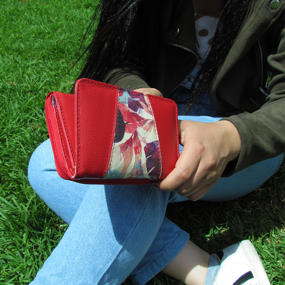 Billetera de cuero con diseño decorativo color rojo.$65.000