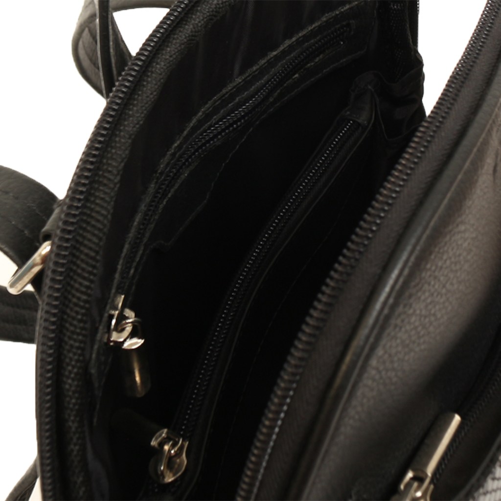 Bolso de cuero color negro y blanco.