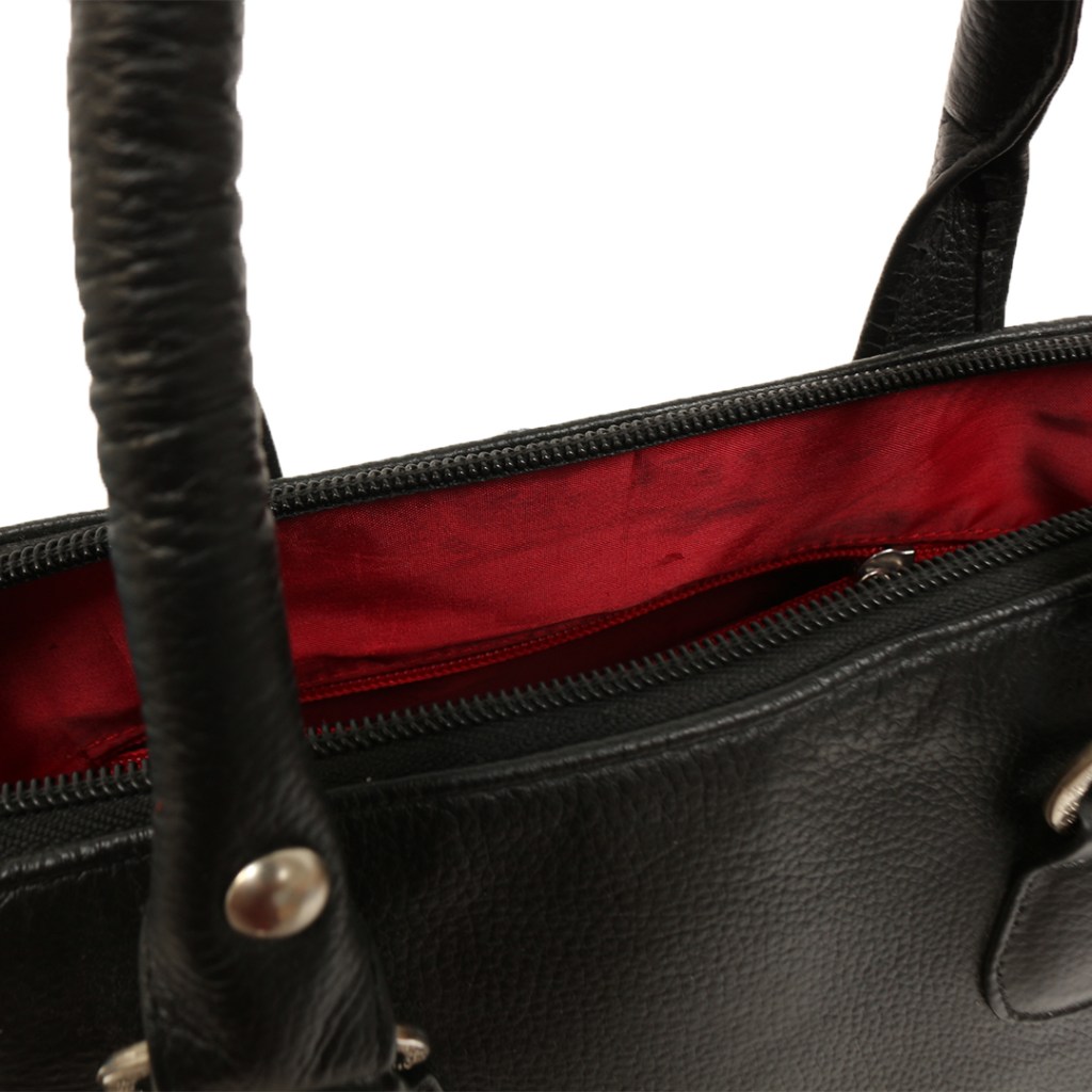 El estilo y la autenticidad convergen en nuestro bolso de cuero color negro, una pieza elaborada con cuero tipo napa de ovino nacional.