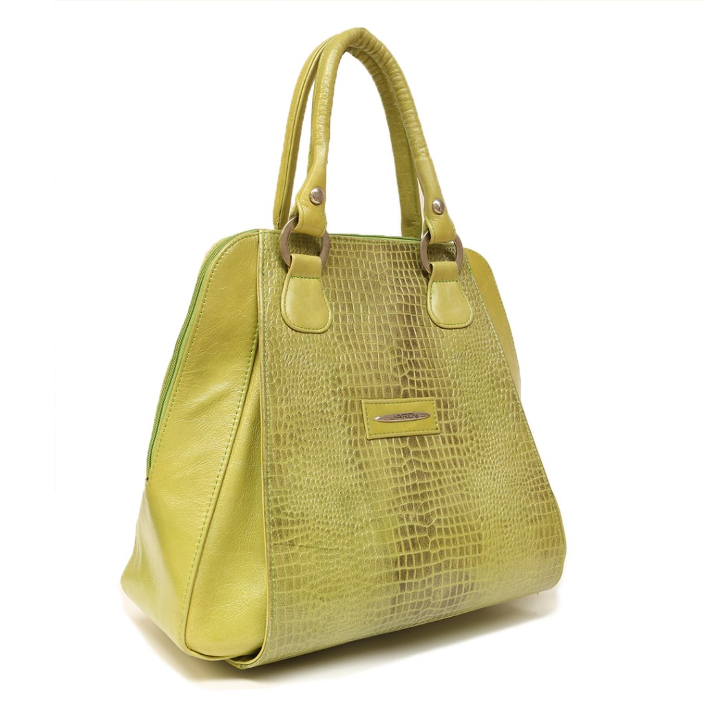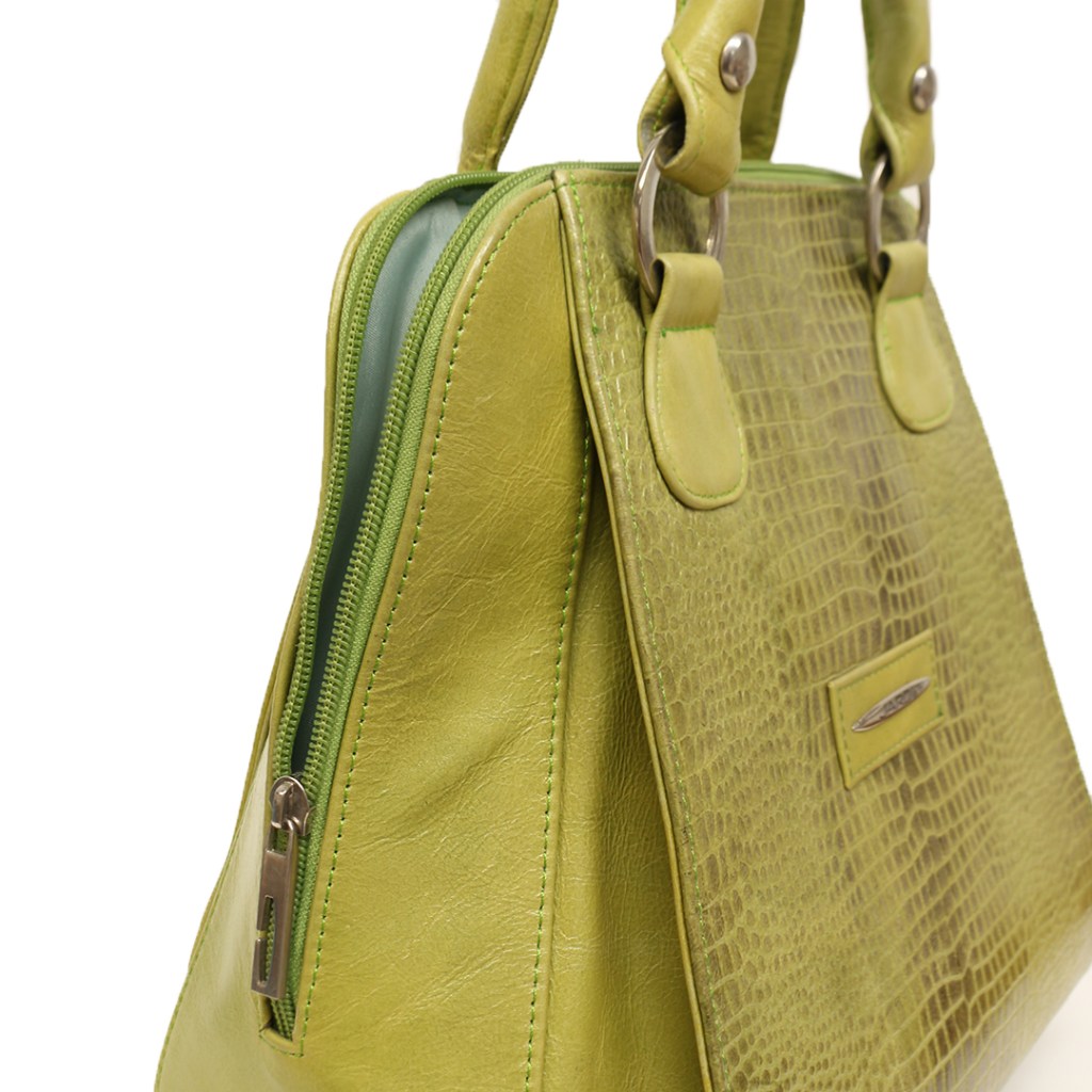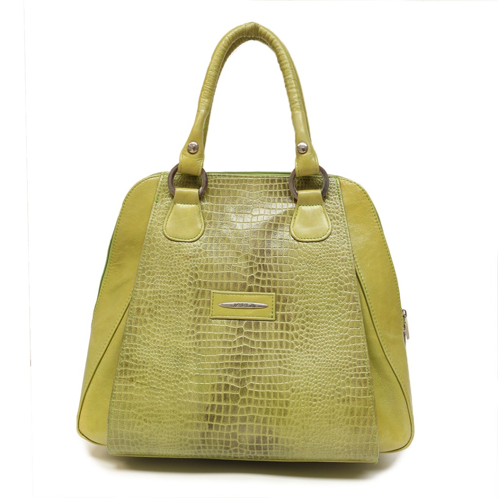 Un diseño elegante compuesto de manija con herraje circular, cremallera superior, cuero con grabado de cocodrilo en frente, cuero liso en laterales y zona posterior , son una muestra de versatilidad y asombro.