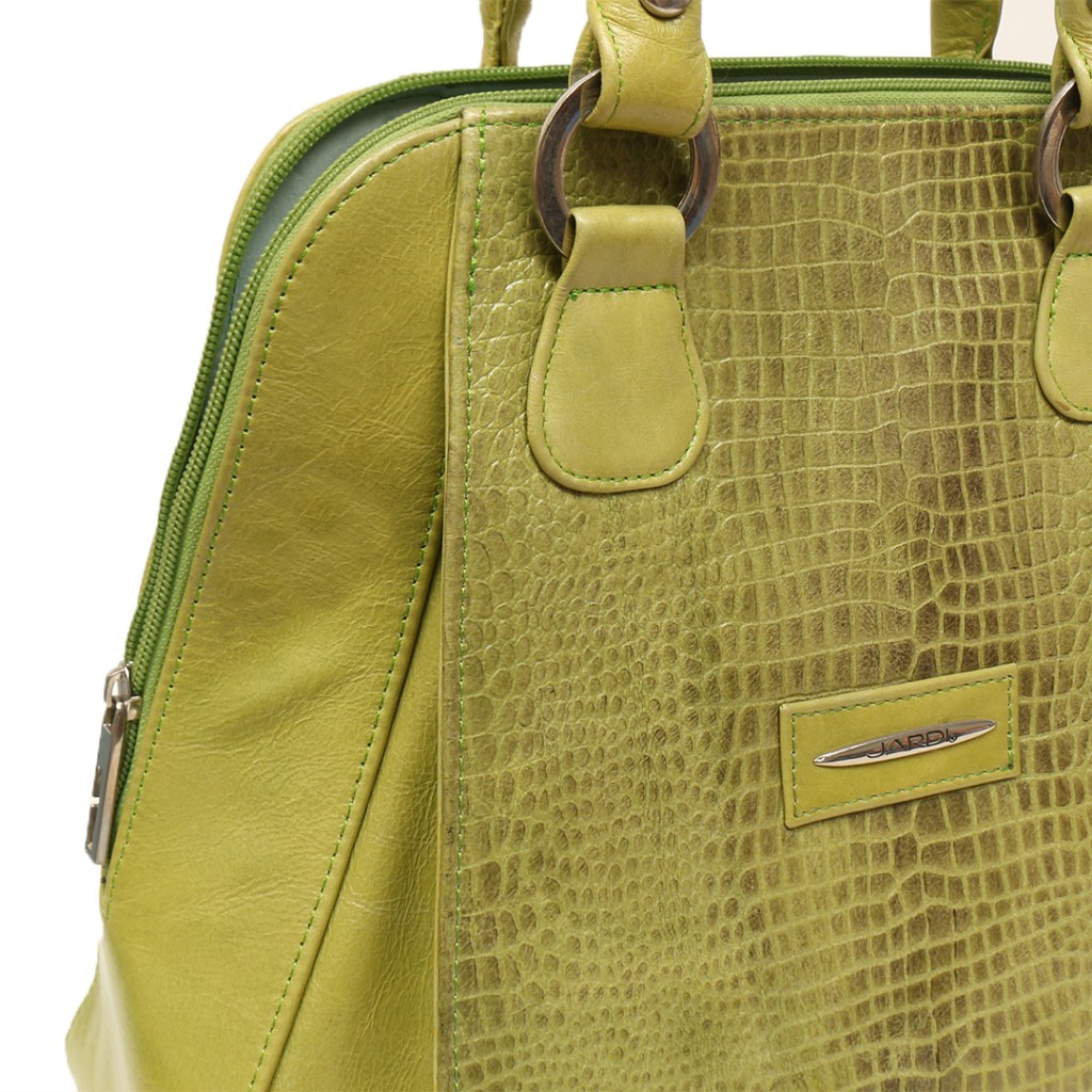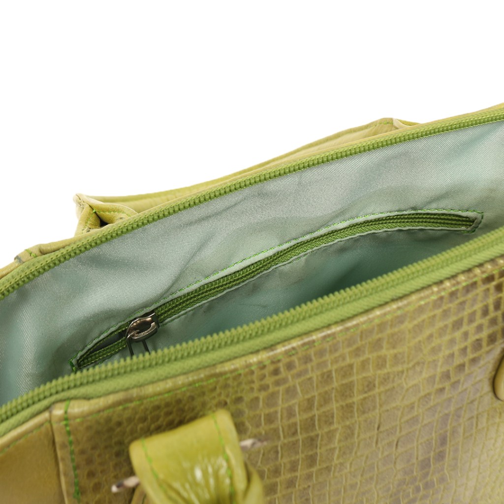 BOLSO DE CUERO GRABADO COLOR VERDE.