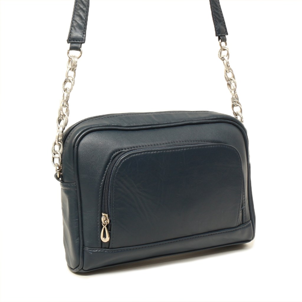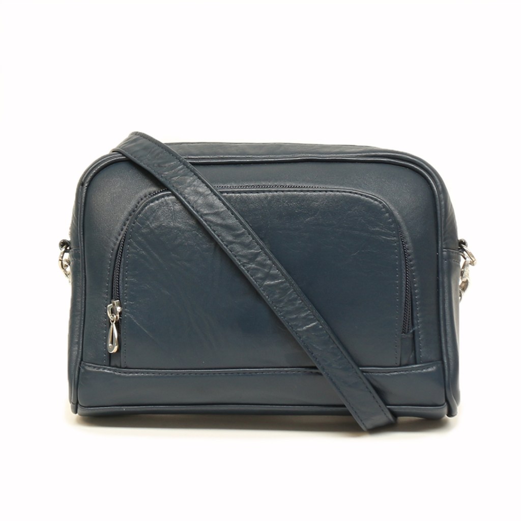 BOLSO DE CUERO MANOS LIBRES COLOR AZUL OSCURO.