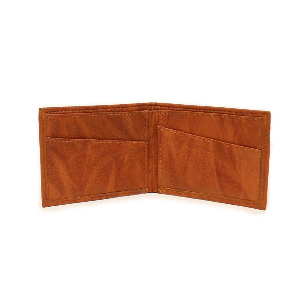 Nuestra billetera de cuero grabado color miel está elaborada con cuero tipo napa y diseñada con un grabado que le da una apariencia similar al papel arrugado. Está compuesta de dos cuerpos con porta billetes y tarjeteros horizontales.