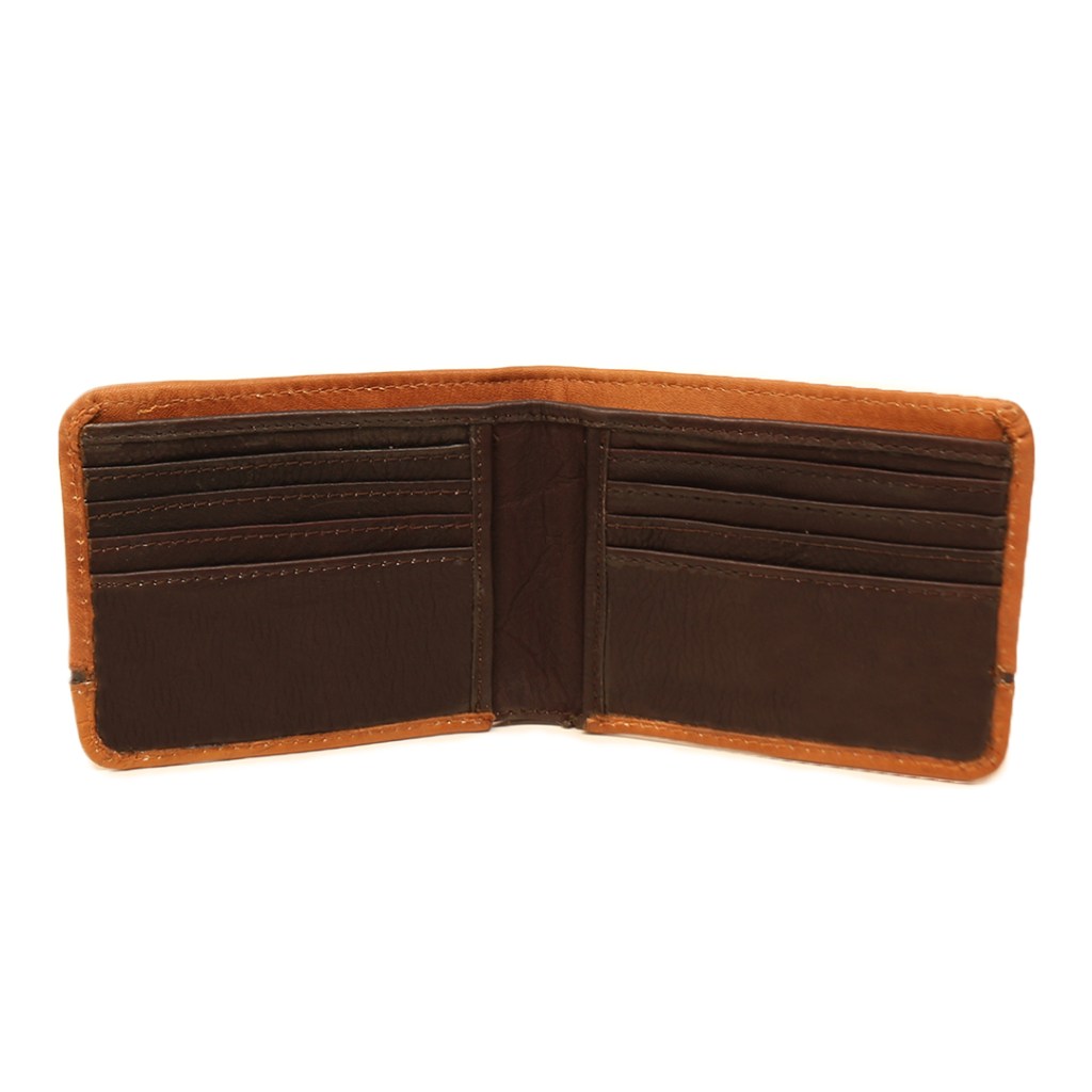 Descubre la esencia de nuestra billetera de cuero color café, elaborada en cuero tipo napa.