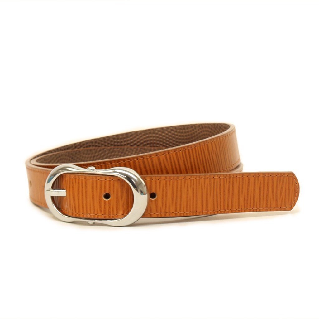 El concepto urbano y vanguardista se fusionan en nuestro cinturón de cuero color café claro, una pieza elaborada con cuero tipo napa de ovino nacional.