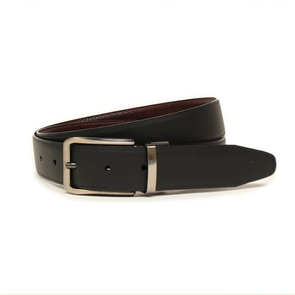 CINTURÓN DE CUERO COLOR NEGRO DOBLE FAZ.