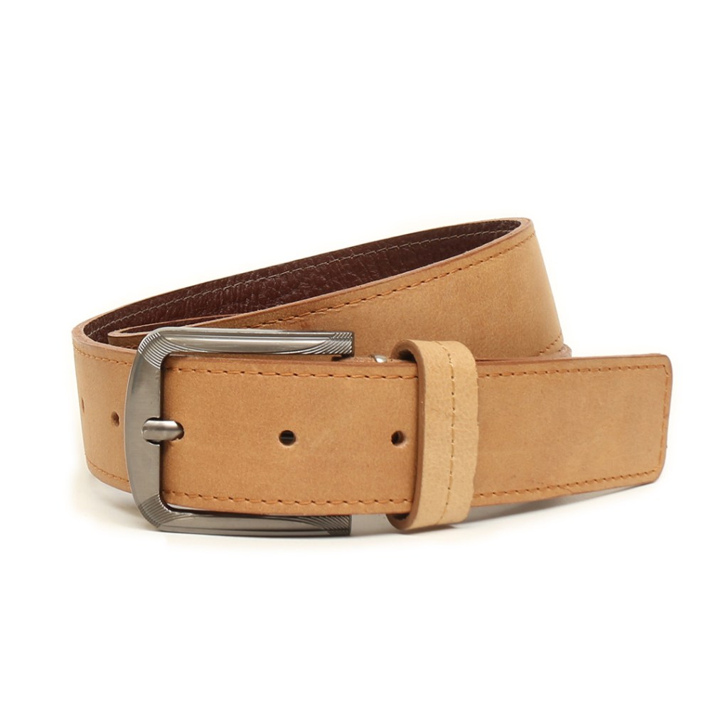 El concepto urbano y vanguardista se fusionan en nuestro cinturón de cuero color café claro, una pieza elaborada con cuero tipo napa de ovino nacional.