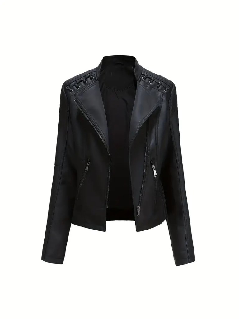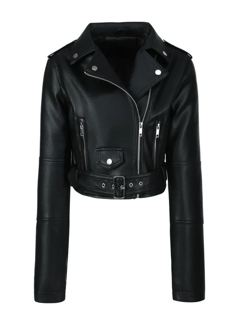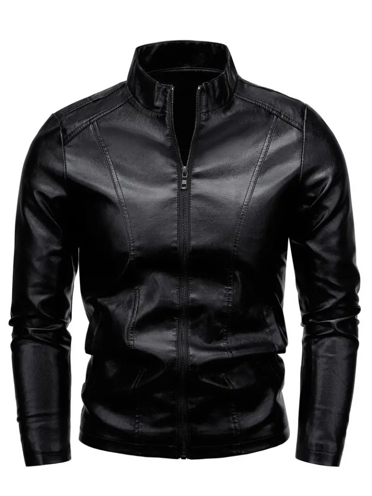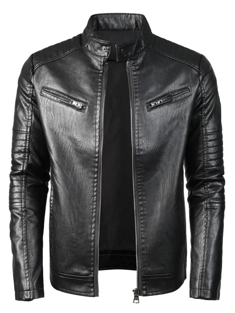 Chaqueta de cuero color negro.