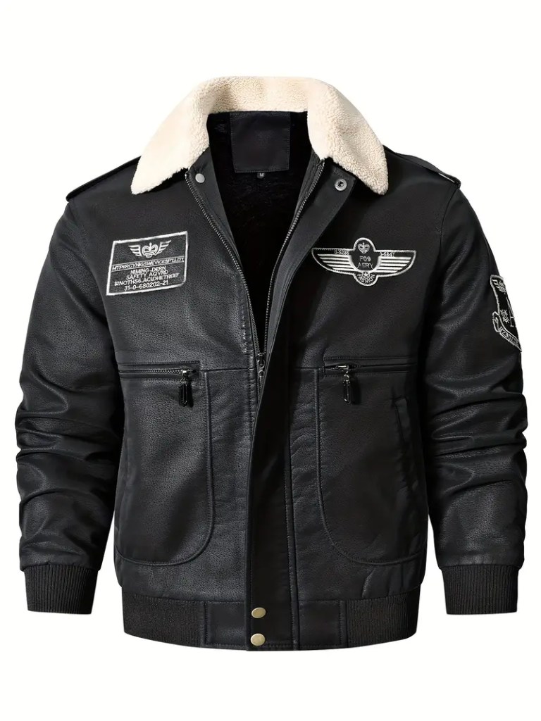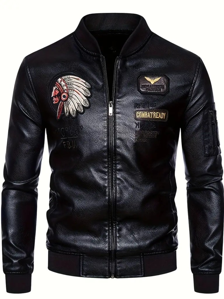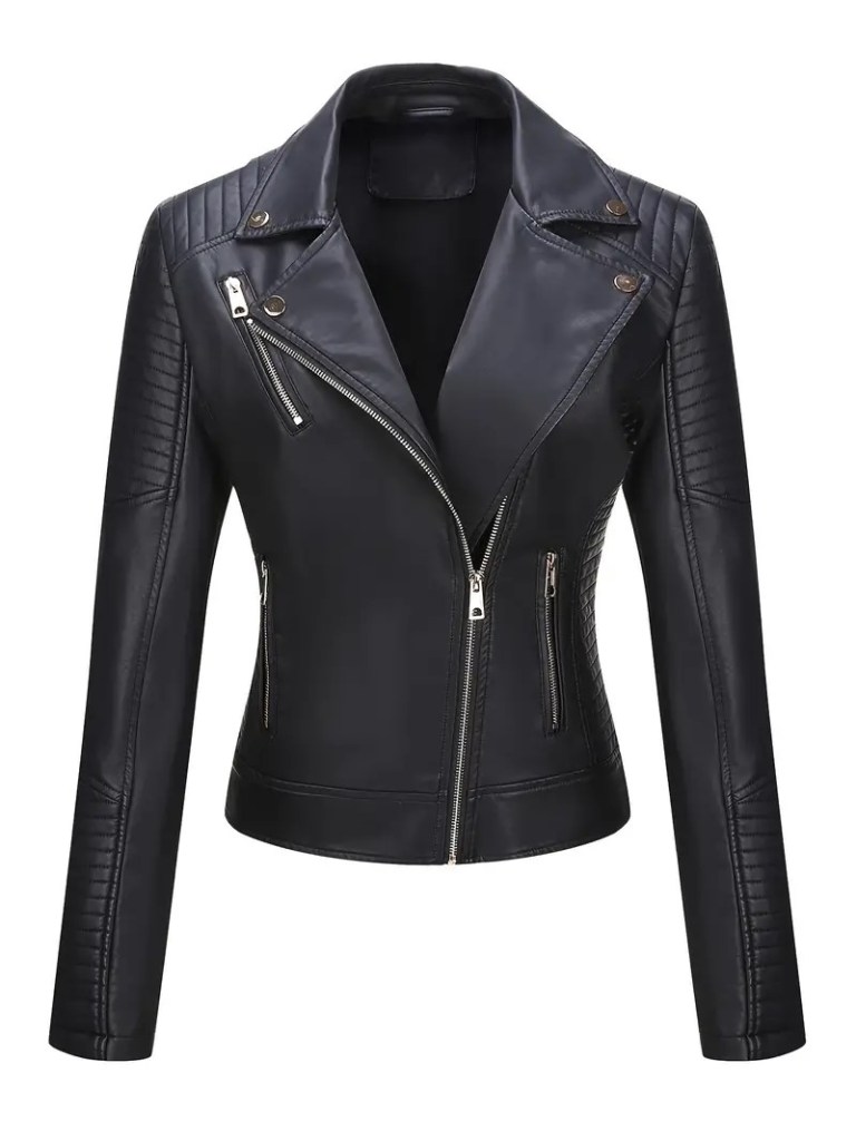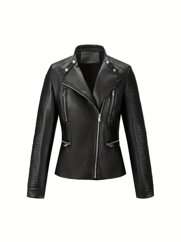 Chaqueta de cuero color negro.
