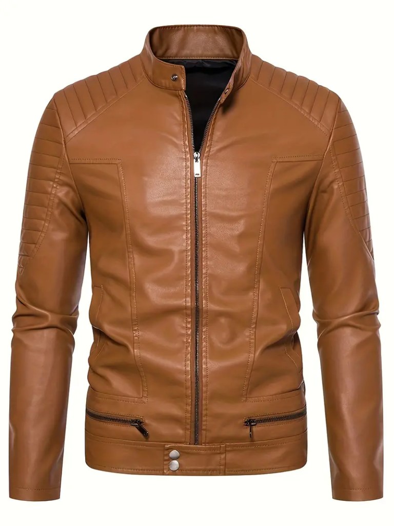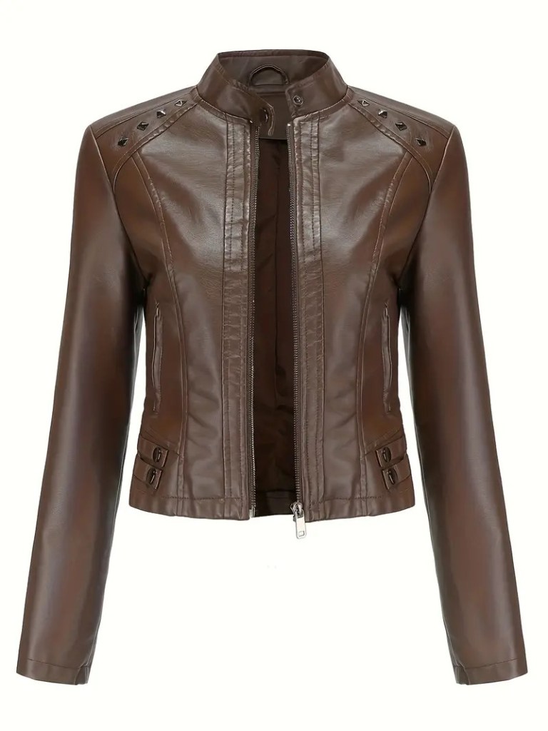 Chaqueta de cuero color café.